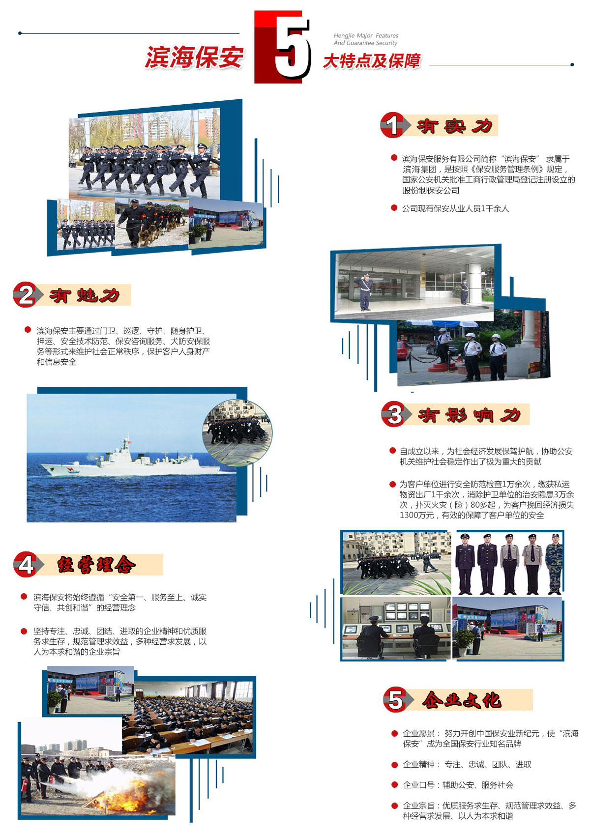 山東濱海保安服務(wù)有限公司簡稱“濱海保安” 隸屬于濱海集團,是按照《保安服務(wù)管理條例》規(guī)定,國家公安機關(guān)批準(zhǔn)工商行政管理局登記注冊設(shè)立的股份制保安公司。